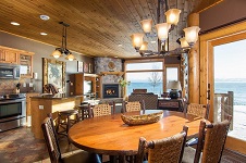 Our distinctive three-level, three-bedroom log home is perfect for a family vacation or friends' getaway. The main level offers spectacular views of Lake Superior and the master suite. The master suite has a king size bed and a private bathroom. The loft |
